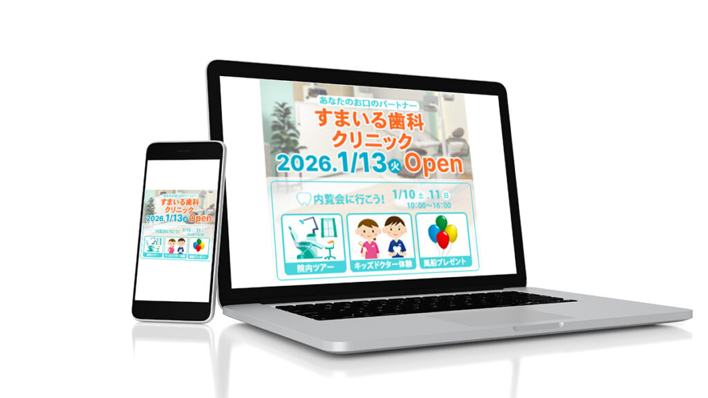 歯科医院OPENバナー 投稿日: 2025年3月31日2025年12月28日 投稿者: snow 使用ツール:photoshop イメージカラー:グリーン 第一印象:親近感、清潔感、 目的:歯科医院オープン内覧会参加への誘導 ターゲット:地域のファミリー層、全世代