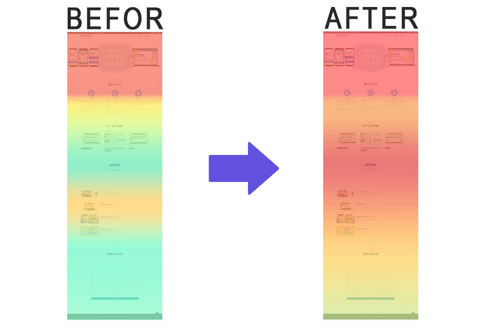 ヒートマップ解析とは ヒートマップツールを導入し、「Webサイトのどこが見られているか」を色で可視化します。LPやHPに訪れたお客様の動き・滞在時間・流入経路を分析し、見た目の美しさだけでなく、✅ 読まれていない箇所の改善✅ 離脱ポイントの特定✅ 反応率向上のための導線設計を行います。データをもとに改善を重ね、Webサイトを継続的に“育てる”サポートをいたします。